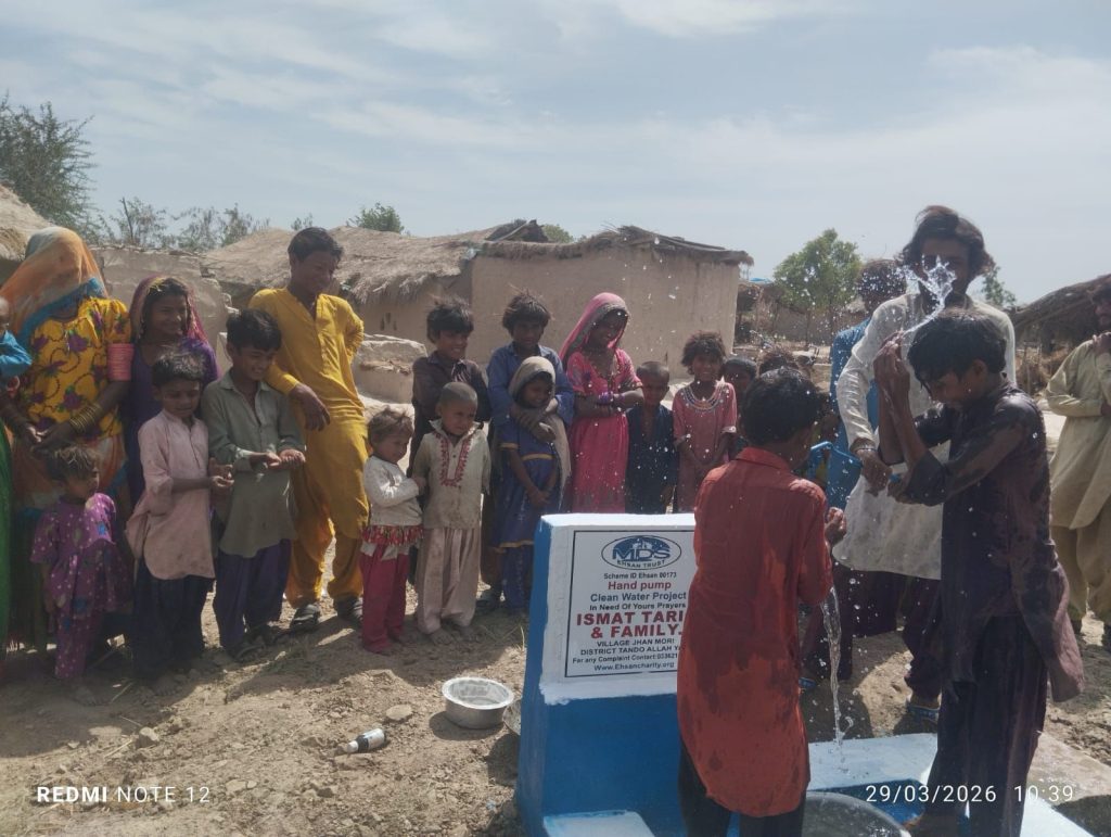 A clean water hand pump has been successfully installed in Tando Allah Yar, Sindh, bringing safe and reliable drinking water to 65 families in the area. This vital project not only supports human health and well-being but also ensures that livestock have access to clean water, improving livelihoods and sustainability for the entire community. Your continued support can help us expand such life-changing initiatives to more underserved regions. Please donate generously and be part of this mission to provide clean water for all.