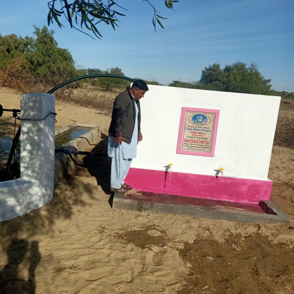 Clean water solar Tubewell is installed in Tharparkur Sindh where 300 people will get clean water and also water to cultivate 5 acres of land to self-sustain and make a living.