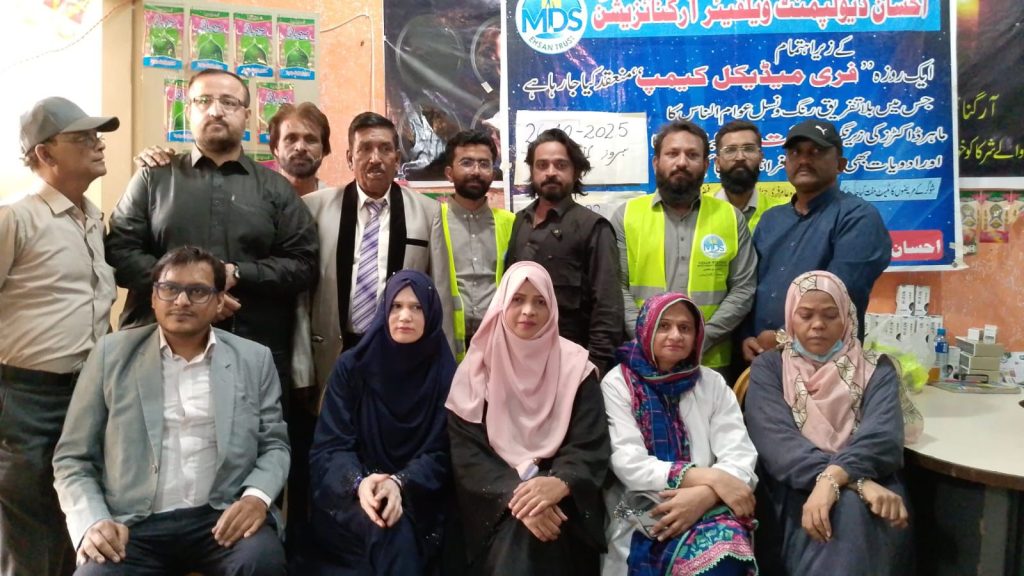 On Sunday, October 26, a free medical camp was successfully organized in Gulshan-e-Bahar, Sector 16, Orangi Town by the Ehsan Welfare Development Organization in collaboration with the Babar Foundation. The event was graced by several social and political figures, including Syed Hasnain, Head of Ehsaas Orangi; Mazhar Imam Bhai, PA and Coordinator to the Commissioner District West; and Mukhtiarkar Irfan Lashari.