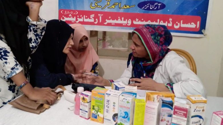 On Sunday, October 26, a free medical camp was successfully organized in Gulshan-e-Bahar, Sector 16, Orangi Town by the Ehsan Welfare Development Organization in collaboration with the Babar Foundation. The event was graced by several social and political figures, including Syed Hasnain, Head of Ehsaas Orangi; Mazhar Imam Bhai, PA and Coordinator to the Commissioner District West; and Mukhtiarkar Irfan Lashari.