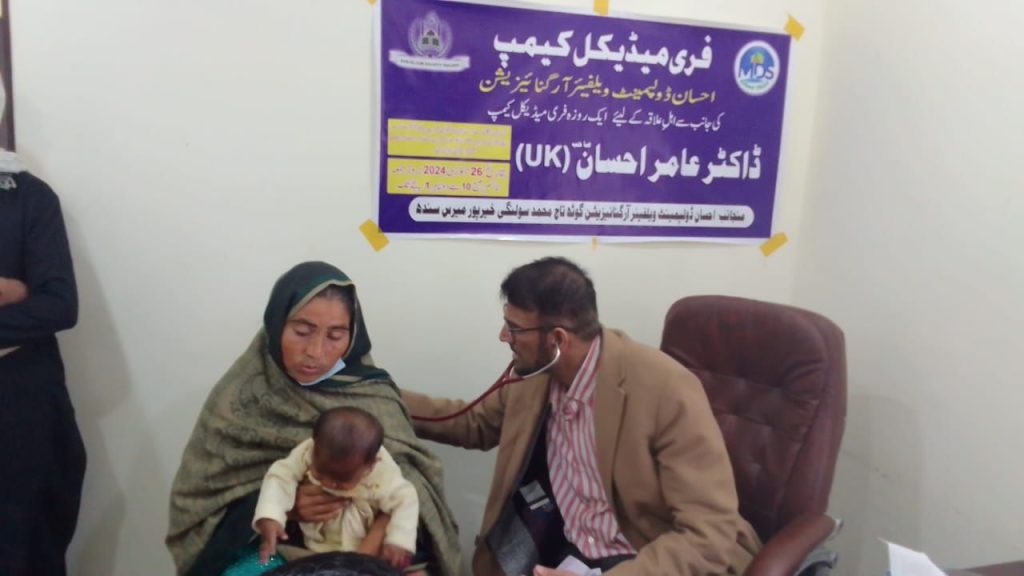 Alhamdolillah, Ehsan Charity successfully organized a free medical camp on January 26th, serving approximately 100 patients in Khairpur village, Solangi, Sindh. The event aimed to provide essential healthcare services to underserved communities, ensuring access to medical assistance for those in need. Through the collaborative efforts of dedicated volunteers and healthcare professionals, the camp exemplified the spirit of compassion and solidarity in addressing healthcare disparities in rural areas.