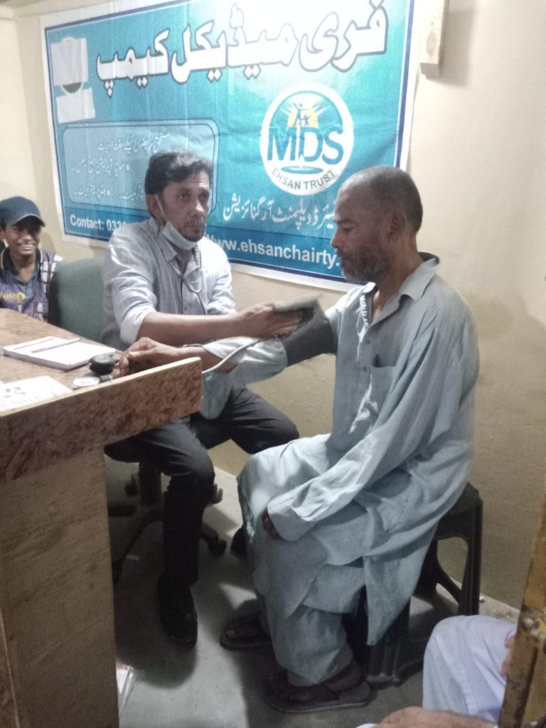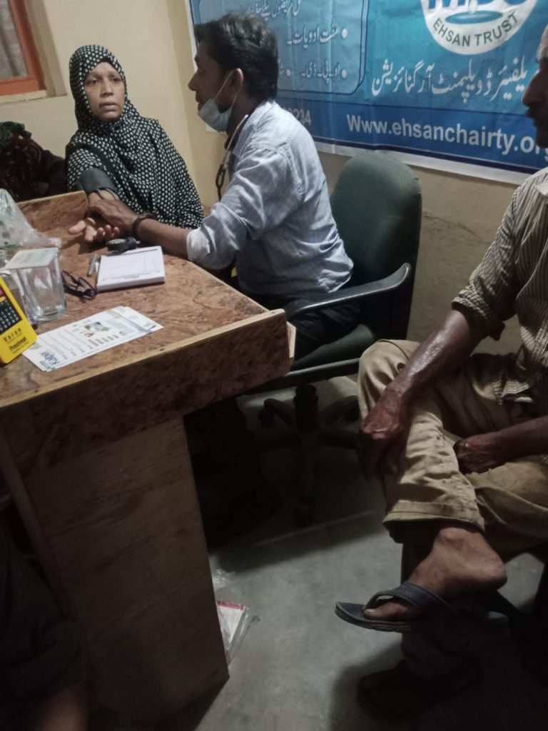 A free medical camp was organized on Sat 29th June 2024 suburb of saooda-Abaad karachi where more than 322 patients were seen. In addition 50 patient were tested for diabetes and given glucometer and 1 year supply of strip .