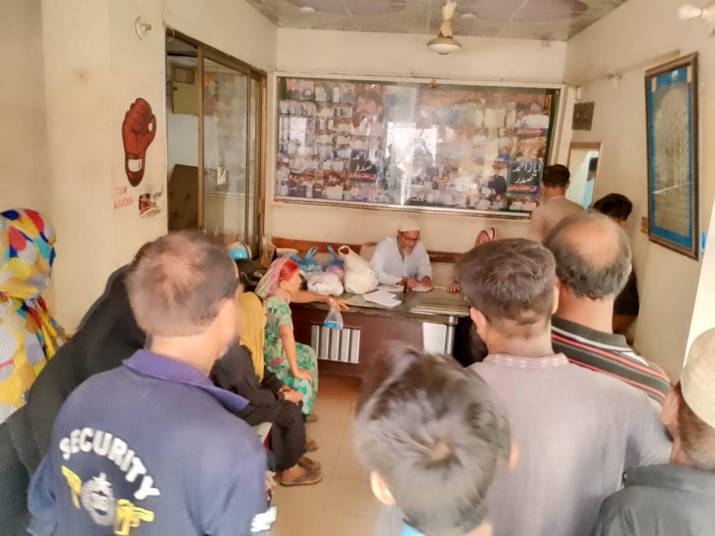 A free medical camp was organized on Sunday, 7th July 2024 at the main office in Liaqat Bazar, Saudabad, Karachi, where over 322 patients were provided medical care. Additionally, 50 patients received diabetes tests and were given glucometers along with a one-year supply of testing strips.